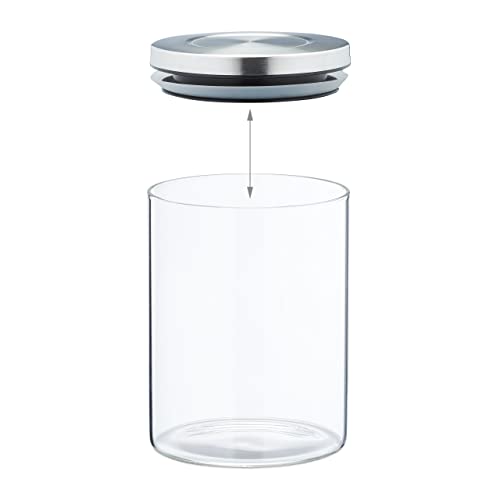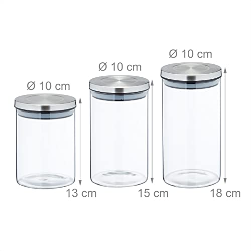 Specification: Relaxdays Set da 3 Barattoli per Alimenti, Recipienti in Vetro Coperchio Acciaio Inox 3 Grandezze, Trasparente Argentato, 60% 30% 10% Silicone