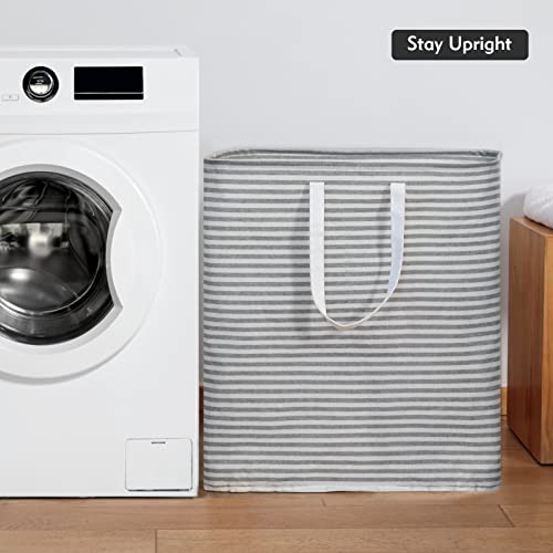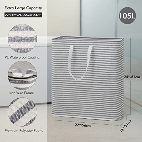 Amazon Brand – Umi 105L Cesto Portabiancheria Autoportante Grande, Cesto biancheria con Manici Estesi, Contenitore Pieghevole per Asciugamani in Camera da Letto, Bagno Impermeabile-Grigio, XL