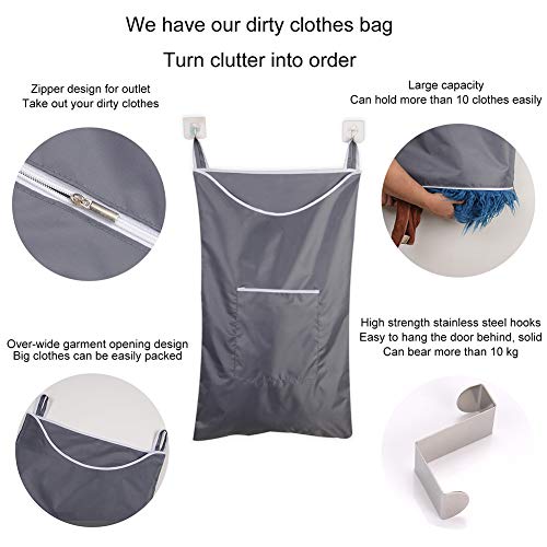 COMTERVI Portabiancheria Appeso, Porta Sacca per Biancheria, Borsa lavapacchi Pieghevole per bucato, portabiancheria con 2 Ganci per Porta in Acciaio Inox, Borsa portabiancheria (1)