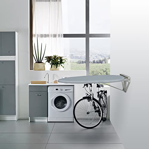 Design pieghevole a parete: il pratico asse da stiro si fissa alla parete e può essere piegato quando non in uso senza occupare spazio aggiuntivo. In questo modo può essere posizionato e utilizzato anche in spazi molto piccoli, risparmiando spazio nella vostra casa.