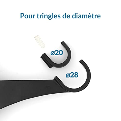 Specification: Set di 2 supporti per asta per tende senza perforazione e incollaggio, fissaggio su bagagliaio per persiane, altezza da 14 a 24 cm, per asta per tende D20-28 mm, colore nero opaco, qualità francese