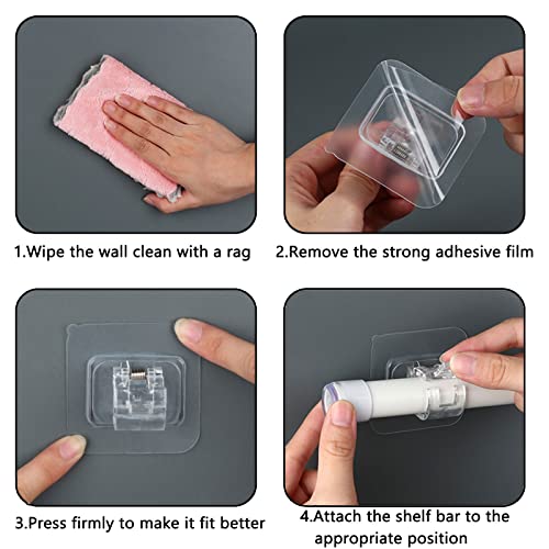 🎈Passaggi per l’uso: 1. Asciugare il muro con un panno, senza lasciare tracce d’acqua, altrimenti si staccherà facilmente. 2. Staccare l’adesivo dal retro del gancio. 3. Premere con decisione sul gancio per adattarlo meglio alla parete. 4. Fissare l’asta alla rientranza e fissare.